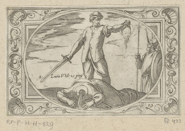 Hendrick Goltzius created this engraving, "Heraut," sometime around 1586, and it is now held in the Rijksmuseum. The initial impression is one of structured formality, with sharp lines defining the architecture and the herald’s attire. The composition is divided into distinct planes, creating a stage-like space. Goltzius’s strategic use of line and form invites us to delve deeper into the artwork's meaning. The herald’s attire, meticulously detailed, signifies his role and status. The objects, such as the books and throne, act as signifiers within a cultural and intellectual framework. The contrast between the ornate herald and the more austere background hints at underlying tensions between display and power. The arrangement of shapes and forms does more than please the eye, it destabilizes fixed meanings. Is Goltzius critiquing or celebrating the established order? Ultimately, the engraving encourages us to question the values and categories of its time.