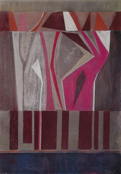 Jean-Paul Jerome made 'Sentiers', probably in 1997, using oil on canvas. Look at the way he builds the image from lots of different shapes in browns and greys. It's a process of layering, and you can see how each little piece fits together to create a bigger picture. The texture is really important here: the canvas gives the whole thing a kind of earthy feel. The paint is thin, almost transparent in places, which lets that texture show through. I love the white circle – it feels like a full moon, and the lines inside it give it a cool 3D effect. But then the shape next to it looks like a leaf, and suddenly you’re not sure what you’re seeing. Jerome’s work reminds me a bit of some of the early cubists, like Braque, where everything is broken down into geometric shapes, but here there’s a softness, a kind of gentle ambiguity. Is it a landscape, a portrait, or something in between? It's up to you to decide.