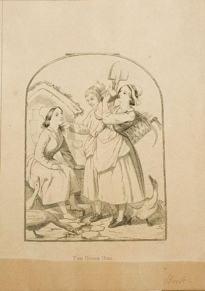 Curator: This etching is titled “Don’t Scream, Silly,” by Francisco Goya. What strikes you immediately? Editor: The grotesque figures, certainly. It's like a nightmare, the sharp lines adding to the raw, unsettling feeling. Curator: Goya used aquatint to create these tonal effects and these images were part of a larger series called "Los Caprichos," meant to critique Spanish society. Editor: The figures are archetypal. The old woman perhaps represents ignorance, while the terrified woman embodies the vulnerability of innocence. Curator: Exactly, and Goya was very interested in portraying the decay of reason and the rise of superstition in his society. Editor: There's a psychological weight to it, a sense of underlying dread that speaks to deeper human fears. Curator: Seeing it through the lens of history, it becomes a powerful commentary on the social and political climate of his time. Editor: Yes, and still manages to resonate with our modern anxieties. A timeless piece in that respect.