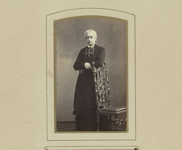 This is a photograph of an unknown professor from the Université Catholique de Louvain, taken by Prosper Morren in Belgium, likely in the late 19th century. The image offers a glimpse into the social and institutional history of academia during that time. Note the professor's formal attire: the academic gown and cap, symbols of knowledge, authority, and tradition. Consider the cultural references within the photograph; the books in the background denote learning and scholarship and also tell us something about the institutions that supported such work. The Université Catholique de Louvain, an important center of Catholic intellectual life, would have been influenced by the religious, political, and social currents of the time. Historical research into the archives of the university, supplemented by studies of fashion and photographic history, might help us learn more about the sitter and the date of this photograph. The meaning of this portrait, like any work of art, is contingent on its social and institutional context.