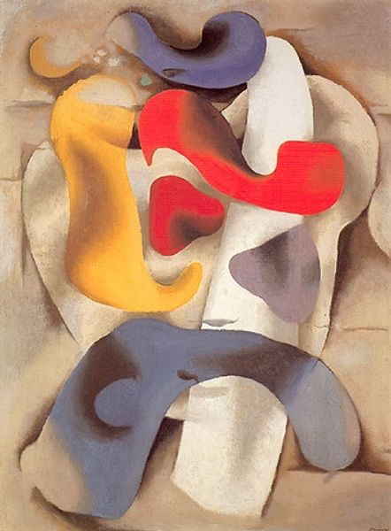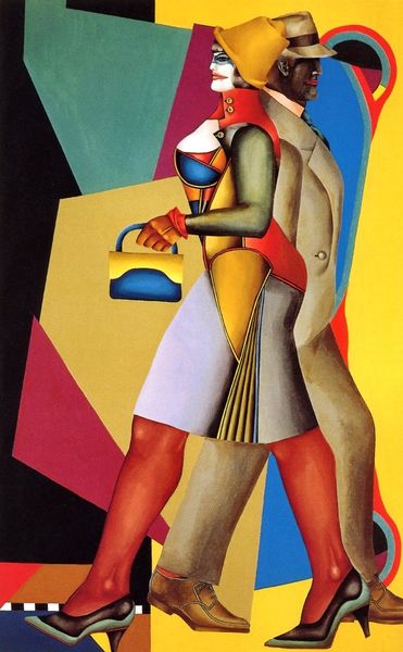 Editor: This is Olexandr Archipenko's "Woman with a Fan II" from 1915, an oil painting. I’m struck by how geometric and almost architectural it feels; less like a person, more like a structure. What do you see in this piece? Curator: I see a powerful statement about the representation of women in a rapidly changing world. Cubism, as seen here, breaks down traditional forms, questioning the male gaze that historically defined female portraits. How do you think Archipenko is engaging with those power dynamics? Editor: Well, it's certainly not the typical, idealized portrait. The fragmented forms, almost like puzzle pieces, deny a singular, coherent image of femininity. Curator: Exactly! This denial is crucial. Consider the socio-political context: women were fighting for suffrage, challenging established gender roles. Archipenko uses abstraction to dismantle the objectification inherent in portraiture, presenting womanhood as complex and multifaceted. Notice the fan; it's a symbol of traditional femininity, yet here it's deconstructed, repurposed. Editor: So, it's less about capturing a likeness and more about a commentary on the constraints placed on women? Curator: Precisely. He’s not just painting a woman; he’s dissecting the very idea of "woman" as a fixed category, revealing its constructed nature. Think about how the sharp angles and rigid lines contrast with the flowing curves we often associate with the feminine. It's a visual argument. What is your final interpretation of Archipenko's position within the work? Editor: It shifts my perspective. I initially saw it as just an interesting Cubist work. I now see a dialogue about gender, identity, and the deconstruction of societal norms. Thanks for the insight. Curator: It is amazing to witness that shift in perspective within you, and a valuable reminder of the power of art.