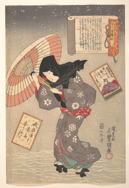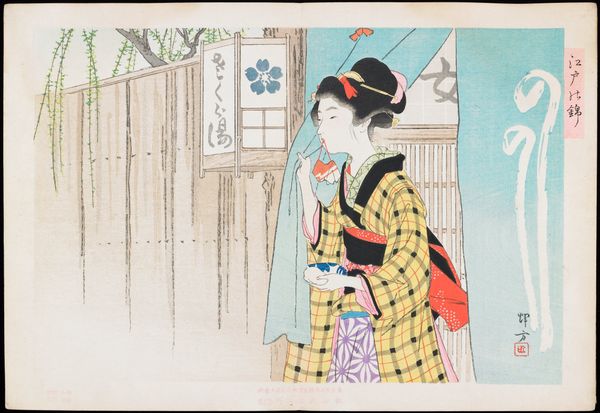 This hand-colored albumen print, titled 'Girl Playing Koto (Music),' was created by an anonymous Japanese artist. It offers a window into the representation of women and traditional arts during a period of significant cultural change in Japan. The image depicts a young woman in a kimono, kneeling gracefully as she plays the koto, a traditional Japanese stringed instrument. The setting appears staged, with a painted backdrop suggesting an idealized landscape. During this period, photography studios often catered to Western tastes, producing images that reinforced exoticized views of Japanese culture. While seemingly benign, the image invites us to consider the complex interplay between tradition, performance, and identity. How does this carefully constructed image reflect or depart from the lived experiences of Japanese women at the time? What role does the performance of traditional arts play in shaping national identity and cultural exchange? Consider how the act of photographing and hand-coloring this image transforms the young woman into both a subject and an object of cultural representation. This photograph serves as a poignant reminder of the power of images to shape perceptions, preserve traditions, and negotiate cultural identities in a rapidly changing world.
