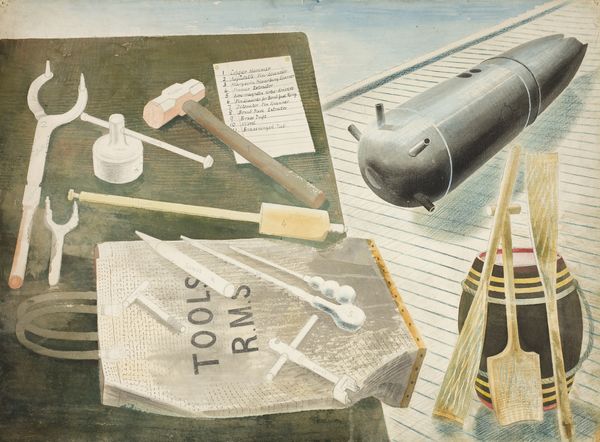 Editor: Here we have Cornelius Norbertus Gijsbrechts’s "Trompe l'Oeil with Trumpet, Celestial Globe and Proclamation by Frederik III" from 1670. It’s an oil on canvas and it completely fools my eye. All the objects seem realistically scattered. How do you interpret this kind of arrangement? Curator: Formally, the effectiveness of a *trompe l'oeil* like this depends entirely on the artist’s mastery of illusionistic techniques. Notice how Gijsbrechts uses chiaroscuro to create deep shadows, lending a sense of volume to otherwise flat, painted objects. Look closely at the textures: the aged paper, the gleaming brass of the trumpet, and the rich pile of the oriental rug. He clearly aimed to replicate their tactile qualities as closely as possible. The composition relies heavily on layering, doesn’t it? Editor: Yes, absolutely. The layering is amazing. You really get the sense of depth. How does the materiality influence meaning? Curator: It underscores the artifice. By so skillfully representing the material world, the artist is reminding us of the fundamental gap between reality and representation. Consider how light and shadow are deployed not only to simulate form but to direct the viewer’s gaze across the canvas, in order. The accumulation of objects itself speaks to the Dutch Golden Age obsession with worldly possessions, but within the narrow constraints of the *trompe l'oeil* framework. Do you see how these elements work together? Editor: I do. The precision really highlights the underlying concepts. It’s quite a clever approach. Thank you. Curator: My pleasure. It’s rewarding to explore how these aesthetic devices contribute to the painting’s overall success.
