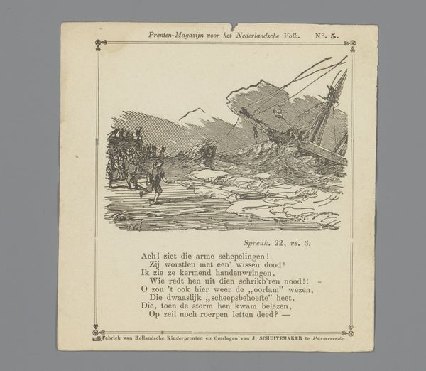 This print, likely made by Isaac Weissenbruch, presents a scene of social commentary through the stark simplicity of line. The composition is immediately striking, with the dark, clustered figures of men pushing a wheelbarrow. This group surrounds a man who appears collapsed within it. Weissenbruch masterfully employs line to define form and texture. Short, repeated strokes suggest the rough texture of clothing and the unkempt nature of the scene, while longer lines delineate the figures and their interactions. The artist uses the semiotic system of signs to convey a clear moral message about the degradation of drunkenness. The contrast between the upright figures of the men and the slumped form in the wheelbarrow creates a visual hierarchy. The print’s formal qualities underscore its cultural critique, inviting viewers to reflect on the relationship between individual behavior and collective responsibility. The act of viewing becomes an act of interpretation, each line a signifier in a larger discourse.