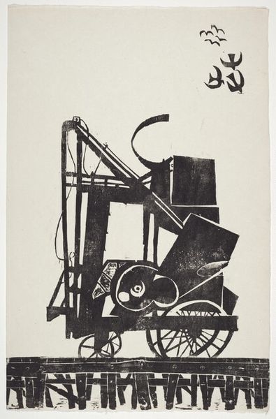 Shiro Miyazaki made this relief print, "Harnessed Steel" with, I imagine, a set of chisels to remove wood from the block. The stark contrast of black and white creates a dramatic effect, amplifying the feeling of industrial power. Look at how Miyazaki uses the gouge to create the smoke billowing from the train's smokestack. The lines carve out negative space to capture the movement and energy of the steam. The artist's hand feels so present, not trying to hide the process but instead, embracing the raw texture and imperfections. This approach reminds me a bit of some German Expressionist woodcuts. Like them, Miyazaki isn't aiming for photographic realism, but instead, a feeling, a sense of awe. The image becomes more about the symbolic power of the machine. It’s less about the train itself and more about the force and the human relationship to technology.