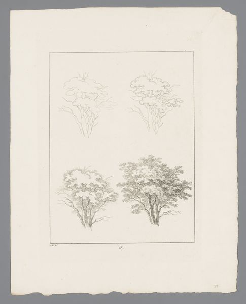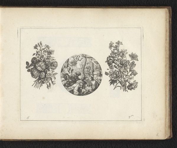 Curator: Immediately, I am struck by the intense detail rendered in what appears to be a rather simple composition. Editor: Indeed. What we're looking at here is "Pioenrozen", or "Peonies," by Gerard Valck, created sometime between 1670 and 1726. It's an ink drawing on paper, now held at the Rijksmuseum. Curator: Valck has chosen a fairly straightforward depiction; these flowers, presented in monochrome, have a rather subdued visual impact, wouldn't you say? What does that say about Dutch tastes during that era, given that these drawings were printed? Editor: Perhaps what seems straightforward is a testament to the burgeoning scientific illustration trends of the late 17th century. The focus shifted to empirical observation and meticulous representation. Flowers themselves were powerful cultural symbols, reflecting prosperity and good taste. Disseminating images like these democratized access to visual culture. Curator: That’s compelling. Peonies have always been freighted with meaning, signifying wealth and honor across cultures. Seeing them rendered with such fine detail on paper underscores a sense of fleeting beauty captured, wouldn't you agree? They’re almost like botanical portraits. Editor: Absolutely. Valck isn’t merely documenting; he’s imbuing these flowers with a symbolic weight. These are, after all, prints; part of a larger, possibly commercial project meant for circulation. It's less about personal expression and more about contributing to a collective visual understanding of the natural world. Curator: And yet, within the apparent simplicity lies an almost meditative quality. Editor: I find myself thinking about who saw this image, how, and in what context. That in itself seems telling about the intersection of art and everyday life. Curator: Ultimately, these modest yet potent images serve as reminders of how our understanding of beauty and knowledge has been shaped by what we choose to represent and how we choose to share it. Editor: And how what may initially seem like a simple botanical sketch can unfold to reveal much larger cultural forces at work.