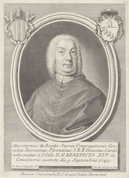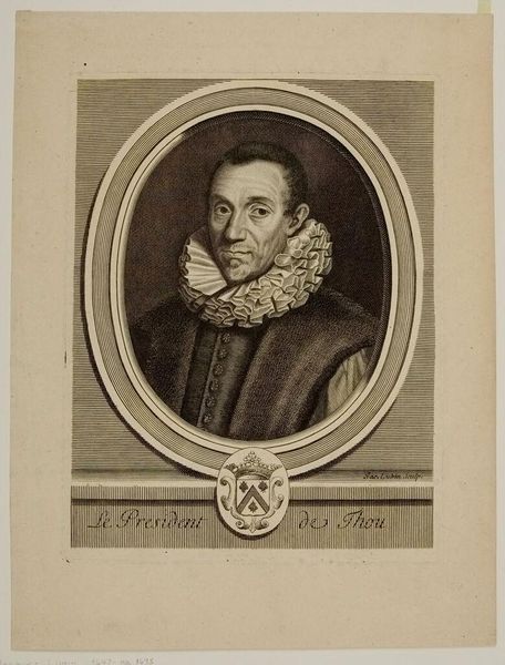 Editor: This is a portrait of Pierre Lallemant by Robert Nanteuil. The intricate details are striking! What can you tell me about the materials and production of this engraving? Curator: Nanteuil was celebrated for his skill in engraving, a labor-intensive process. Think about the copper plate, the tools used to incise lines, and the paper itself. The social status of portrait subjects like Lallemant, Chancellor of Paris, fueled demand. Editor: So, the materials and the social standing of the subject are intertwined? Curator: Exactly. The value of the print lies not only in its artistic merit, but in the materials used and the social context surrounding its creation and consumption. Editor: That's a different way to look at it. I'll definitely consider the social context behind the work from now on. Curator: Indeed. The work reflects labor, materiality, and consumption.