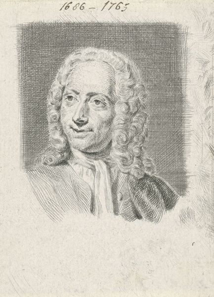 This drawing is a portrait of David van der Plaes, and it was made with chalk by an anonymous artist. The composition of the artwork is built on a cool and subdued palette of grey tones, enhancing its formal qualities. The subject is depicted with a soft, diffused light that gently models his face, drawing our attention to the delicate lines defining his features. The artist has carefully employed chalk to create a sense of volume and depth, while the flowing lines of the hair add a dynamic contrast to the stillness of the portrait. The inscription below the portrait, framed by ornate detailing, anchors the image, providing context to the portrayed figure. This element not only serves an aesthetic function, but also acts as a signifier of identity and status, typical of portraiture of this period. Through the careful arrangement of line, tone, and text, the artwork serves not only as a representation of an individual but also as a reflection of broader cultural values and the semiotic codes of its time.