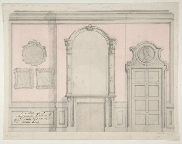This drawing, "Design for a Monument", is rendered with graphite on paper by an anonymous artist. The composition shows a section of an architectural structure, likely a monument or memorial. The use of graphite allows for precise linework and subtle gradations of tone, emphasizing the structure's formal elements. Note the symmetry and balance in the architectural design, which creates a sense of stability and order. The use of vertical lines in the columns and panels contrasts with the curves of the arch, creating a dynamic interplay of shapes. The blank spaces are as important as the drawn lines; they allow the monument’s structure to breathe, offering a sense of scale. The overall effect is one of restrained grandeur, with the monument’s design speaking to both earthly solidity and ethereal aspiration. The monument's design invites contemplation on the interplay of form and space, and the cultural codings that ascribe meaning to architectural structures.