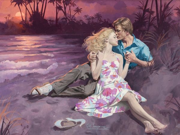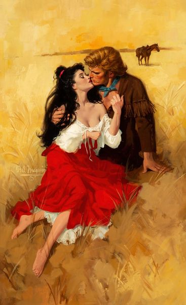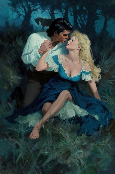 Robert Maguire painted this romance paperback cover, Almost a Lady, using what looks like pretty standard oil paint. Look at the way he's built up the snow in the background, swirling blues and whites, so painterly it's almost abstract. The texture is everything here. Maguire isn't trying to hide his brushstrokes; he's embracing them. You can almost feel the push and pull of the brush as he worked, a real physical record of his process. It is a world away from, say, Gerhard Richter who scrapes and obscures his surfaces. Take a look at the woman's dress, how the brown almost drips into the gold. That little detail makes the whole piece feel alive, like a frozen moment in a much bigger story. Someone like Lisa Yuskavage, who plays with similar themes of romance and irony, comes to mind. Art is always in dialogue, right?