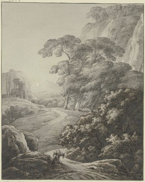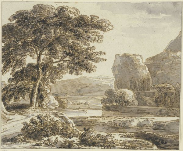 Franz Kobell rendered this "Mountain landscape with lake" using pen and black ink. It's a traditional method, yes, but think about the labour involved in the final image's linear detail, and the artist's control of line weights. The density of the ink strokes describes the textures of the leaves, rocks, and water with considerable skill, a feat that has imbued this landscape with social and cultural significance. Pen-and-ink drawing has a long lineage, from medieval manuscripts through old master drawings and more recently, printed illustrations. A drawing like this speaks to the kind of skilled traditions that run parallel to fine arts. The amount of work involved in its production invites us to consider how much labor is involved in creating works of art that, on the surface, may appear effortless. By understanding the materials and processes, we gain a deeper appreciation for the work’s meaning, prompting a reevaluation of the distinction between art and craft.