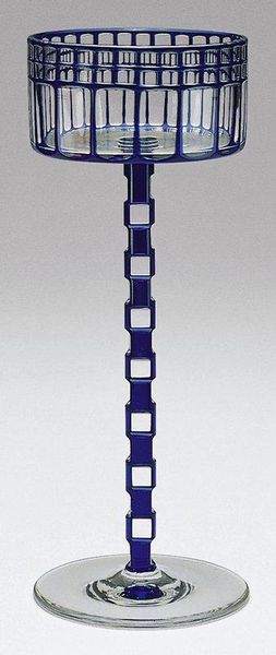 Here is the audio guide script: This ‘Kelkglas met een paarse Überfang met weggeslepen vierkanten en rechthoeken’ was made, we think, by E. Bakalowitz & Söhne using glass. It’s like they built this goblet from purple ice cubes. I love how the purple colour stains the light, and then slices it up with geometric precision. You can really sense the making, I mean, the glassblower blowing, the cutter grinding away – decisions being made, and changed. Look closely at the stem, and notice how it becomes this rising pillar of squares, leading your eye up to the bowl. It reminds me a little of some of the glasswork of Christopher Dresser. In a way this piece is about holding and containing – water, wine, light, vision, and maybe even time. It’s about how we shape and are shaped by the vessels we create. Isn’t it amazing how a simple object can hold so many thoughts?