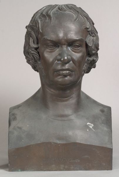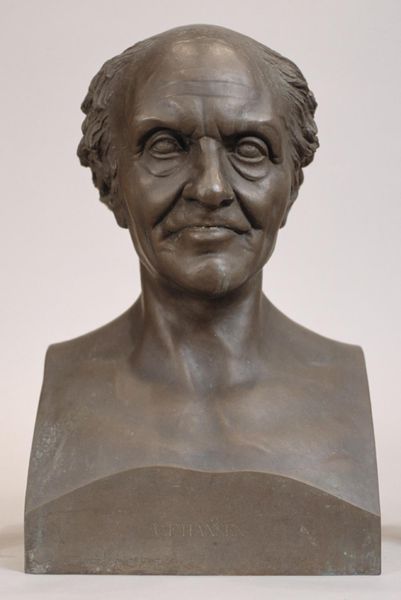 Curator: Standing before us, we have H.W. Bissen's 1867 bronze sculpture, "Departementschef C. F. Holm," currently housed here at the SMK. What strikes you most about this bust? Editor: The gravitas. Immediately, I’m drawn to the subject's slightly downturned gaze and the clear lines etched by age in his face. It suggests a lifetime of responsibility and perhaps, a touch of weariness, doesn't it? Curator: Absolutely. Bissen was a leading figure in Danish Neoclassical sculpture, so naturally he often received commissions to render leading citizens and prominent public figures into enduring likenesses like this one. The Neoclassical style elevated these people to near mythical levels. Editor: Right. The stern expression and somewhat formal presentation remind us that portrait busts of this nature function to immortalize an individual in a very particular, socially constructed manner. What is interesting is that while this work clearly draws upon the classical bust traditions with its focus on idealized naturalism, you can feel a clear trend to realism with a particular interest in this man’s face. It invites introspection. How did Holm’s contemporaries receive this depiction? Curator: Given Holm’s standing as a Department Head, the sculpture likely reinforced his authority and respectability within bureaucratic circles. Patrons like Holm sought to align themselves with the enduring legacy of classical ideals through these commissions. They sought to show power and integrity through this means. The reception was most likely tied to ideas about societal role, class and duty to King and Country. Editor: That’s fascinating. So, while rooted in classical ideals, it also served as a very tangible representation of societal power structures at play during that era, using a specific visual language to convey status. It gives a potent sense of what was culturally considered important to show and admire in an individual. Curator: Precisely. These weren’t mere decorations. They actively participated in defining and maintaining the established social order, not unlike public statues to royals that sprung up throughout Europe around that time. Editor: Reflecting on Bissen’s work, it strikes me how skillfully it merges the classical with the personal. It offers a powerful insight into the image-making and identity construction within 19th-century Danish society. Curator: Yes, the sculpture provides insight into the fusion of public persona and individual likeness. Bissen succeeded to portray both the man and the social structure which shaped his worldview.