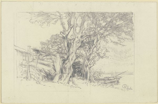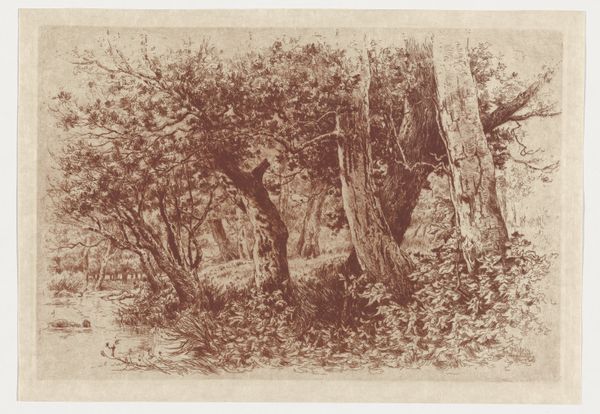 Carel Nicolaas Storm van 's-Gravesande made this etching of trees in the dunes near Haarlem in the Netherlands, although the exact date is unknown. It depicts a seemingly natural scene, but consider the role of artistic institutions in shaping our view of nature itself. The image is rendered through a network of fine lines, a visual code reflecting the artist's training and the etching techniques prevalent at the time. The choice of subject – the Dutch landscape – connects to a deep cultural fascination with the local environment and the Romantic movement. Given the period of the artist, it is likely that he attended an art academy. These institutions played a key role in standardizing artistic techniques and aesthetics. Artists often adhered to or rebelled against these conventions, influencing the art world. Understanding this artwork requires considering the Dutch art world of the late 19th century, where debates about realism, naturalism, and the role of art played out. By researching the artist's biography, exhibition history, and contemporary art criticism, we can gain insight into the social and institutional context that shaped this seemingly simple landscape.