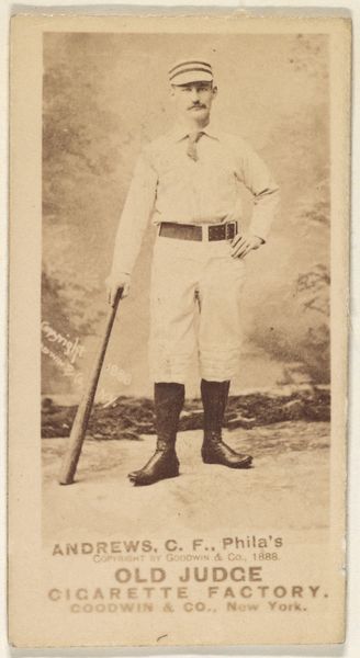 This small card, produced by Goodwin & Company around 1889, features Albert C. "Al" Mays, a pitcher for Cleveland, as part of the Old Judge Cigarettes series. In the late 19th century, the rise of commercialized baseball coincided with new forms of advertising. These cards, distributed with tobacco products, offer insight into how athletes were marketed and consumed as cultural figures. But what does it mean to be a cultural figure? Mays is captured in the iconic pose, embodying the ideal of athleticism. Yet, consider how identity is constructed here, how the intersection of sport, commerce, and masculinity coalesce to form his image. These cards were immensely popular, shaping perceptions of athletes and solidifying baseball's place in American culture. It's a glimpse into a world where the lines between sport, commerce, and identity were just beginning to blur, leaving us to reflect on who we choose to celebrate, and why.