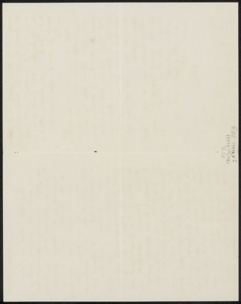 Curator: Upon initial viewing, Isaac Israels' “Brief aan Jan Veth”, crafted sometime between 1875 and 1925, strikes me as deceptively simple. There’s a sparseness that draws the eye immediately to the composition’s materiality, specifically the aged paper and faint lines. Editor: Indeed. It’s almost ghostly, this… absence. The texture and nearly-invisible lines conjure a sense of faded communication—lost meanings struggling to surface. It evokes a quietude, the echo of a once-important message. Curator: Absolutely. The horizontal lines suggest the architecture of language itself—a skeletal framework for potential discourse. We see the latent energy of potential meaning, even without legible text. I’m particularly struck by the subtle variations in tone— the ink’s delicate play with the paper. Editor: I agree, there's a latent energy but that it has mostly faded. It becomes almost a symbol of time, what’s remembered, and perhaps more importantly, what's lost. Jan Veth, the addressee, a significant figure in the art world, now only exists within this symbolic form on display at the Rijksmuseum. This absent letter invites a rumination on cultural memory. Curator: The fact that it’s presented as a work of art and not simply an historical document prompts us to consider those questions regarding legacy, absolutely. In many ways, it represents the act of communication abstracted into pure form. A powerful comment on the inherent structures underlying not just the written word, but visual language as well. Editor: The absence makes me question, perhaps intentionally, the power dynamics embedded within artistic circles: the ephemeral nature of friendship and influence, all captured within these delicate impressions. A silent record echoing louder as years pass. Curator: Precisely. In a work so ostensibly minimal, Israels achieves a potent meditation on absence and the unspoken. It's visual semiotics at its finest, drawing focus to the structural significance of the written word as both communicative form and aesthetic symbol. Editor: And perhaps we find meaning within this silent dialogue, these historical whispers carried on aging paper. Curator: A beautiful sentiment that captures the artwork’s subtle depth; it underscores the continued dialogue of its impact and artistic quality.