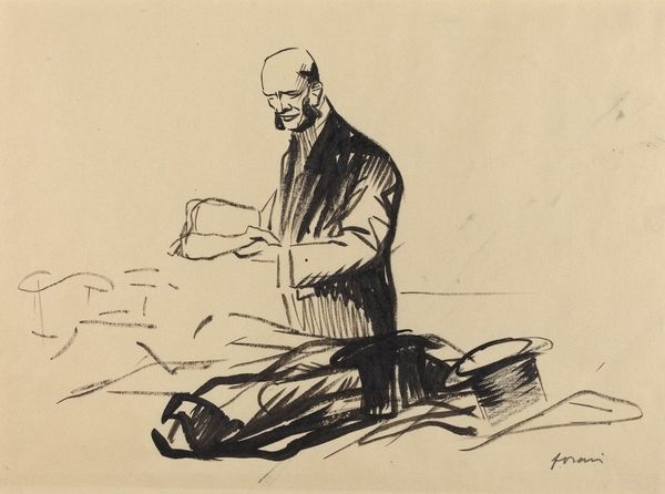 Jean-Louis Forain created this lithograph titled "Versailles, 28 Juin." The date is significant; it marks the signing of the Treaty of Versailles in 1919, formally ending World War I. Forain, living through the Franco-Prussian War and later World War I, was deeply affected by the political and social upheavals of his time. This work captures the somber atmosphere and the weight of the historical moment. We see a lone figure, presumably a German official, seated at a table, his helmet before him, embodying defeat. The faceless crowd in the background suggests the multitude of lives impacted by the war and the treaty. The inscription “La séance est levée” translates to "The session is adjourned," signaling closure, but perhaps also hinting at the lingering tensions and unresolved issues that would continue to shape the 20th century. The artist invites us to reflect on the human cost of conflict and the complexities of peace. Forain leaves us contemplating not just the end of one war, but the seeds of future conflicts sown in the aftermath.