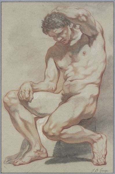 Editor: Here we have Willem Panneels’ pencil drawing, "Christ Crowned with Thorns. The torso of Christ. After Van Dyck," created sometime between 1628 and 1630. The figure's pose, with the hands clasped, strikes me as conveying both strength and vulnerability. What do you see in this piece? Curator: What I find compelling is how Panneels uses Van Dyck’s subject to explore the performativity of suffering. In the 17th century, depictions of Christ's body were highly politicized. The vulnerability you noticed isn't just a personal feeling but an intentional statement. Consider how artists used religious narratives to speak to broader themes of power, oppression, and even resistance against political forces of the time. How might this drawing have been perceived in a society grappling with religious and political turmoil? Editor: So, it’s not just a drawing of a religious figure, it’s also a commentary on power dynamics? The vulnerability is almost defiant? Curator: Exactly. The "torso" itself becomes a site of power, and arguably protest. The early Renaissance revival is significant. The period turned back to antiquity, as society was leaving medieval thinking. Notice the muscularity, idealized form even in apparent agony? How does that inform or challenge traditional portrayals, particularly of suffering, within religious art? Editor: I hadn't considered that. I was so focused on the emotion, I didn’t realize it spoke to wider societal tensions. Now, seeing the classical form of Christ in such dire emotional straits changes everything. I really see how images during social conflicts gain added meanings. Curator: It demonstrates that art always reflects and refracts its historical moment. These depictions become powerful statements of defiance but more importantly are evidence of society shifting under your feet. Editor: This drawing makes me question the real motivations of society and powerful figures in both history, but also contemporarily. It can have so much more depth than what you see on the surface! Curator: Indeed, engaging with historical context allows us to understand how artists both respond to and shape the narratives of their time.