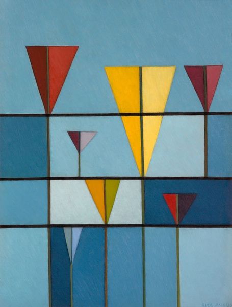 Manuel Cargaleiro created this untitled painting with oil on canvas, here at the Gulbenkian Museum. The composition is immediately striking: a grid-like structure where vibrant reds and blues create a rhythmic push and pull across the surface. Cargaleiro masterfully juxtaposes geometric forms – circles, squares, and triangles – setting up visual tensions that animate the canvas. Look at how he divides the circles into quadrants, using color to disrupt their symmetry and invite the viewer's eye to move around the artwork. This careful arrangement reflects a deep engagement with semiotics, where the artwork can be interpreted as a set of signs. The basic shapes aren't just aesthetic choices; they could be seen as cultural codes, hinting at deeper meanings and inviting us to decode the painting's structure. Notice the lack of a central focus. This destabilization is crucial, suggesting that the painting resists any fixed interpretation. Instead, it operates as a field of relations where form and color interact to challenge established ways of seeing.