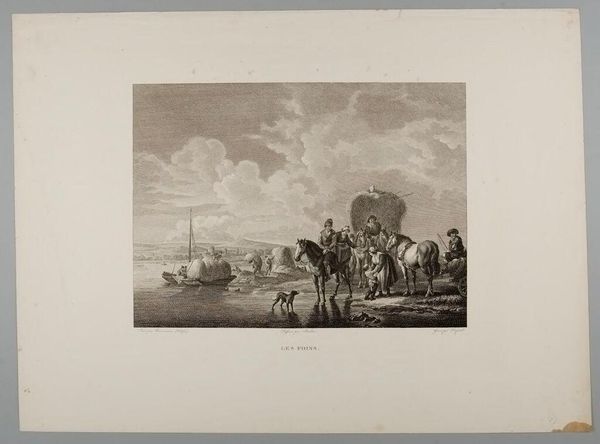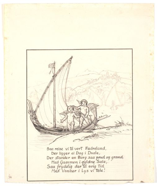 Curator: The artwork before us, titled "The Harpist's Song", is an engraving of unknown origin, housed at the Harvard Art Museums. Editor: I'm immediately struck by the melancholic atmosphere. The figures clustered in the boat seem lost in thought, their music a possible solace. Curator: Precisely. Note the composition—the figures are meticulously arranged within the boat, each distinct yet unified by their shared journey. The light and shadow, though subtle, create depth and a sense of enclosure. Editor: It feels like they're adrift, not just on the water, but in their own minds, the harp and other instruments creating a soundscape for introspection. What do you think of the tower in the distance? Curator: Its presence punctuates the scene, offering a symbolic contrast between the ephemeral nature of the boat’s journey and the permanence of architecture. It adds another dimension to the narrative. Editor: It definitely gives the impression of a journey in search of something. This unknown artist really managed to convey a sense of timelessness. Curator: Indeed, it's a composition that invites contemplation and rewards close examination.