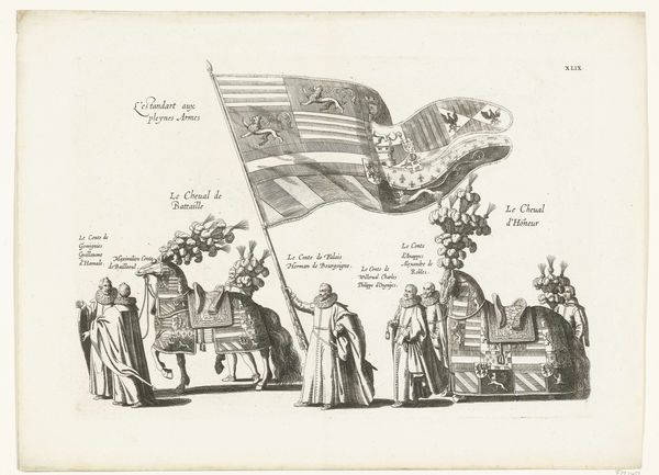 Cornelis Galle I created this print titled *Begrafenisstoet van aartshertog Albrecht* in 1622. This work immortalizes a funerary procession, a public display laden with political significance. Albrecht’s identity as a ruler is carefully constructed through symbolic representation. In the 17th century, such displays reinforced hierarchies of power, with each figure in the procession embodying a specific role in the social order. The flags on display were not mere decoration; they signified lineage, territory, and authority. Consider how power is not just asserted but also performed. Albrecht’s identity was constructed through the ceremonial projection of his status. Galle's detailed rendering invites us to reflect on the rituals that perpetuate social and political norms. The solemnity of the procession is a reminder of mortality, yet it simultaneously asserts the enduring nature of power. The identities of those participating and observing were shaped by the spectacle of grief and the affirmation of dynastic continuity. Reflect on how this funerary procession created a sense of collective identity tied to leadership.
