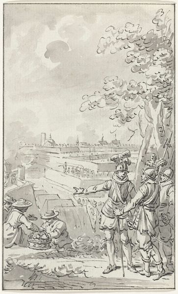 This drawing, "Zomer" by Reinier Vinkeles, made around 1741, captures the essence of summer through pastoral imagery. The scene is dominated by the golden wheat fields, a powerful symbol of abundance and harvest. Notice the workers diligently reaping the fields, a motif echoing back to ancient harvest festivals, like the Roman Consualia, celebrating the god of the granary. In ancient Egypt, the act of harvesting was associated with rebirth and renewal, seen in depictions of the god Osiris. This cycle of sowing and reaping mirrors the human condition itself. The image is not merely bucolic. The act of pointing, seen in one of the figures, is a gesture found in classical art, a tool to direct the viewer's eye but also laden with intent. Perhaps it signifies direction, aspiration, or even a divine mandate. The presence of these age-old symbols suggests a deep connection to our collective past. It reveals how the emotional weight of these archetypes continues to engage us on a subconscious level, reminding us of life's cyclical nature and the enduring power of cultural memory.