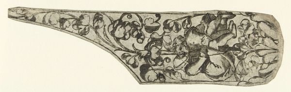 Curator: I’m quite drawn to this delicately rendered piece from the Rijksmuseum’s collection, an ink drawing titled "Randdecoratie met bovenaan twee schildpadden," or “Border Decoration with Two Turtles at the Top,” created sometime after 1611 by Henri Le Roy. Editor: My first thought is how wonderfully strange this all is – a very curious assembly of animals amidst ornate scrollwork! There's a fascinating juxtaposition between the organic forms of nature and those meticulously crafted lines of artifice. What was this meant to decorate, do you imagine? Curator: These borders are particularly interesting; one could apply them to larger works such as plasterwork for walls and ceilings. But also to pottery and smaller everyday items such as mirrors. It gives me this feeling of nature overflowing, yet so meticulously controlled. Like a carefully manicured wilderness, capturing this almost Baroque sensibility, even within such fine lines. What materials might've been used, though? Editor: Well, you're spot on with the 'fine lines.' It's largely thin linework. The creation undoubtedly involved specific types of quill pens, perhaps goose or swan feathers, meticulously chosen for their fineness. The ink composition would matter just as much. Did the artist prepare the ink, using something like oak gall, for those deep blacks or were those washes from different mixes? Did the artist experiment with the thickness and smoothness? Curator: Knowing Le Roy's background and other extant works, I believe he had assistants preparing and testing different inks; I sense he sought both precision and dynamism in the shading, adding a kind of playful quality against such precise patterns. The creatures amidst it are very symbolic, I would say; these details suggest mortality but also vitality, rebirth perhaps. Editor: It strikes me that choosing creatures that scuttle and swim as ornamentation pushes at the boundaries of design. How accessible were these depictions for consumption and production, given what the natural sciences understood at the time? And furthermore, what did a "design" signify for consumption in the market then? What do you see as the work's deeper implications? Curator: A kind of harmony – finding beauty in the everyday. Le Roy seems to capture this world on the brink of scientific revolution while retaining a very personal artistic voice. I think its allure is precisely that tension. Editor: Yes, exactly. Seeing this drawing up close truly makes one think about art’s connection to the commerce, craftsmanship, and curiosity in observing the natural world at that time.