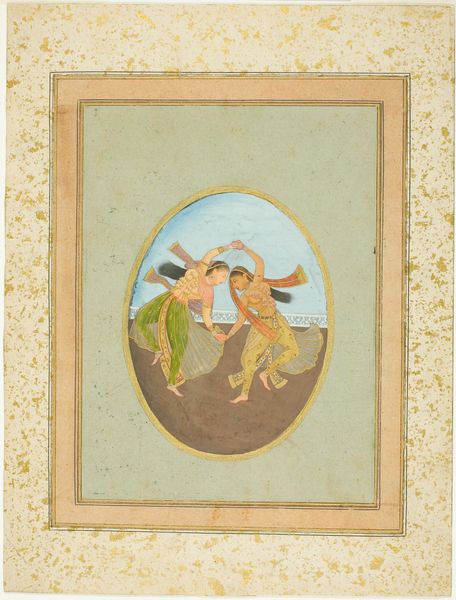 Painted by Chokha around the early 19th century, this artwork uses opaque watercolor on paper. Traditional painting like this involves meticulously grinding minerals and stones to create a fine pigment, mixed with a binding medium like gum arabic. The paper itself would be carefully prepared, burnished to create a smooth surface for the detailed brushwork. The painting's material execution has a direct impact on its aesthetic. Notice the smoothness and fine detail achieved through the watercolor technique. Look at the way the artist uses layers of color to build up the forms, creating a sense of depth and texture. The work is painstaking, embodying a devotion to skill and process. The social significance emerges through its demonstration of skill, communicating power and wealth, reflecting a society where artistic labor was valued. Paying attention to the materials and the making allows us to appreciate the time, labor, and skill involved in creating such a work, challenging any perceived divide between craft and fine art.