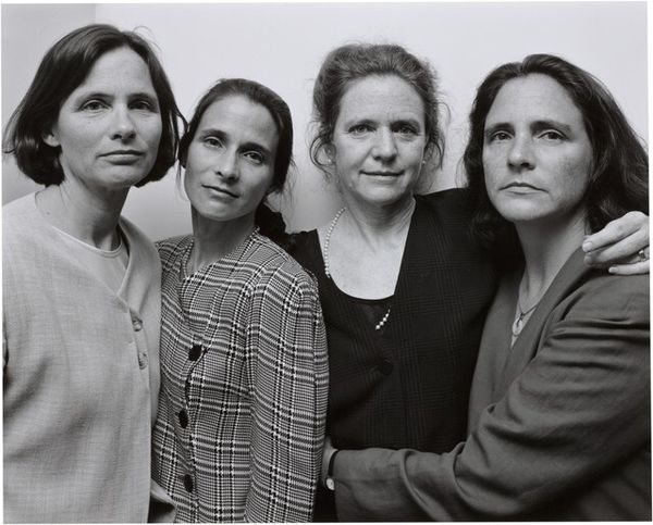This is a gelatin silver print of four sisters, made by Nicholas Nixon in Dallas, Texas. Photographic prints like this one may seem commonplace now, but they are the result of a complex sequence of chemical and mechanical processes. The artist begins with a camera and film, and then laboriously works in the darkroom. The negative is used as a template to create a positive image, developed through careful control of light exposure, chemical baths, and washing. The choice of gelatin silver gives the image its particular tonal range, from deep blacks to luminous whites, and its smooth surface. The resulting object is more than just a record of a moment. It embodies the artist's skill, judgment, and labor. It challenges us to appreciate the craft embedded in even the most seemingly straightforward images. In doing so, Nixon elevates photography from mere reproduction to a fine art, deeply invested in both material and process.