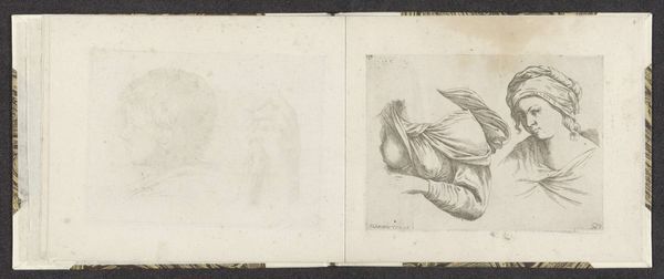 This small drawing of a winged "Putto", or cherubic figure, is part of a sketchbook by an anonymous artist. Its fine lines and soft shading create an ethereal and dreamlike quality. The composition features a cherub in mid-flight, positioned diagonally across the page. This dynamic placement infuses the image with movement and energy, defying the static nature of the medium. The artist employs subtle cross-hatching to define form and volume, particularly noticeable in the cherub's limbs and wings. This technique not only adds depth but also enhances the tactile quality of the drawing, inviting the viewer to appreciate the artist's skill in rendering the texture of skin and feathers. The overall effect is one of lightness and grace, as if the figure is effortlessly floating through space. Consider how the formal elements of line, tone, and composition work together to create a sense of otherworldly beauty and timelessness. It is in this delicate balance that the drawing transcends its representational function to become a meditation on form, beauty, and the possibilities of artistic expression.