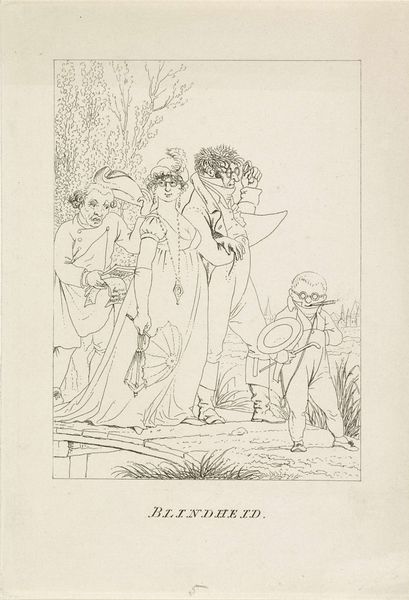 This line engraving, titled ‘Blinde straatzanger’ and made by Jacob Ernst Marcus, depicts a blind street singer. The medium of choice, line engraving, is significant. Line engraving is an intaglio printmaking technique, in which lines are incised into a metal plate, using a tool called a burin. The image is created through a network of fine lines, requiring skill and precision to capture detail and texture. The lines are then filled with ink and printed onto paper, making it a cost-effective method for mass production. This method allowed for a wider distribution of images in an era before photography, creating a visual record of social life and urban scenes. The choice of line engraving reflects the growing importance of print culture in the 18th and 19th centuries, which democratized visual art and made it accessible to a broader audience. Marcus’s print engages with issues of labor and class, while blurring the boundaries between high art and craft.