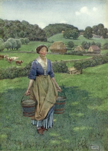 Editor: So, here we have "Poisoned Well Chimera" by Jacek Malczewski, an oil painting, possibly done en plein air. It's a curious image...the woman almost seems at peace, even joyful, despite the heavy symbolism in the title. What do you make of that contrast? Curator: The “poisoned well” immediately evokes themes of corruption, of something essential being tainted. And the chimera—often a symbol of impossible desires, monstrous hybridity—hints at internal conflict. Note how Malczewski juxtaposes this imagery with a seemingly idyllic, almost Impressionistic, landscape. Editor: Yes, that position right next to an open well seems precarious at best. How do these elements function together? Curator: Perhaps the woman embodies Poland, drawing from a source—the well, Polish identity—now poisoned by internal division or external forces. Look closely: what does the water look like? What do you recognize as symbols? Her adornments feel nationalistic, wouldn't you say? Editor: I hadn't noticed the feathers at first! They definitely feel purposeful, like a uniform detail, or some traditional custom. Curator: Exactly. This is Malczewski wrestling with Poland’s fate, personifying it in a striking female figure and set against this deceptively calm backdrop. The radiant sunlight ironically underscores the undercurrent of despair, an emotionally complex tension. Editor: That makes the title even more unsettling now, but also adds a whole new layer of meaning to her smile. Curator: Indeed. Art reveals cultural anxieties through recurring forms. These images, rich in symbolism, leave enduring impacts, which remind us of our shared history and culture. Editor: It's incredible how much a single image can hold when you start unpacking its symbols!
