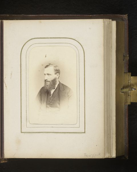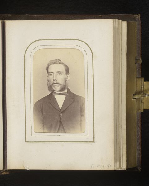 This is a portrait of a man with a mustache and beard by Jean Rougeot de Briel. The creation of this image coincides with a period of significant social and political transformation. As photography emerged, so did questions about representation, identity, and the power dynamics inherent in portraiture. Here we see a man, likely of means given the time period, carefully posed to project a certain image. What does it mean to have your likeness captured and shared in an era defined by class distinctions? The sitter's suit, beard, and mustache speak volumes about the cultural expectations and gendered norms of the time. His gaze, though seemingly direct, invites us to reflect on the layers of identity and performance embedded in this early photographic artifact.