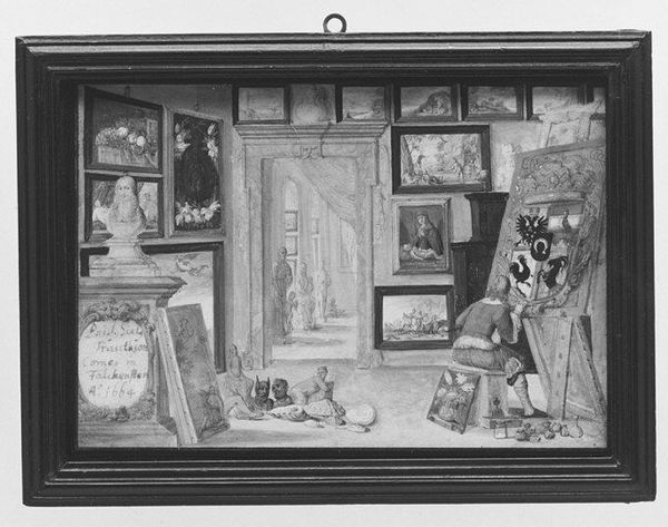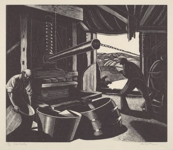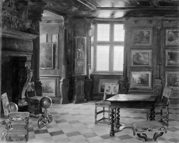H.J. Hammer created this painting, "En bondestue," using oil on canvas, materials traditionally associated with fine art. But look closer, and the apparent realism of the scene invites us to consider how the techniques of painting might mimic those of building, farming, and home-making. The interior is rendered with a keen eye for material texture: the rough-hewn wooden planks, the woven fabrics, the feathered bodies of the chickens wandering about. Hammer’s brushstrokes seem to emulate the labor of rural life, each dab of paint akin to a stroke of an axe, or a stitch in a quilt. We see the inherent qualities of the domestic materials that were used at the time. The painting's monochrome palette speaks to the starkness of rural existence, where resources were scarce and life was intimately connected to the rhythms of nature. By elevating these humble materials to the realm of art, Hammer invites us to recognize the value and dignity of labor, challenging the hierarchy between fine art and the everyday crafts that sustain human life.
