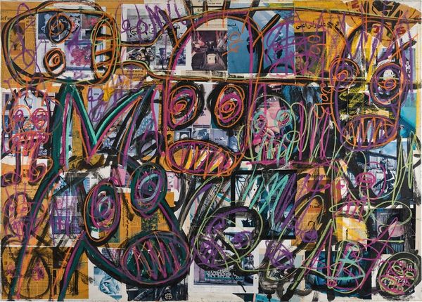 Art Historian: Editor: Editor: We're looking at "Multi face" by Aboudia, created in 2013 using mixed media. It’s a jumble of images and vibrant colors that feels…chaotic, almost like a visual representation of urban noise. What do you see in this piece? Art Historian: That feeling of urban noise is spot on. For me, Aboudia's work always brings up questions about representation and power. How do you think his background growing up in Abidjan during political turmoil influences his art? Editor: Well, knowing that, it feels like he’s reflecting the energy and even the violence of the city. Is it fair to consider it political art, or is it more personal? Art Historian: It’s both. Aboudia's art emerged from a specific socio-political context, a time of intense conflict in Côte d'Ivoire. He uses those almost childlike figures and frenetic energy to channel the experiences of marginalized youth. The rawness and urgency in his style become a powerful form of social commentary. Have you noticed how art institutions, galleries in particular, tend to frame and present his works? Editor: It's often shown as contemporary African art. I guess I never really thought about how being categorized affects its message. Does that framing limit the possible interpretations? Art Historian: Absolutely. That framing influences the way audiences engage with the work, potentially overshadowing the individual voice and specific political commentary. Do you feel that understanding the history enriches your experience of the artwork? Editor: Definitely. Knowing the historical context makes it less about pure aesthetics and more about understanding the social impact of the image itself. Art Historian: Exactly, and that’s where the real power of art resides – its ability to challenge, provoke, and ignite dialogue about the world around us. Editor: I will remember that in our next encounter with artworks. Thanks for that input!