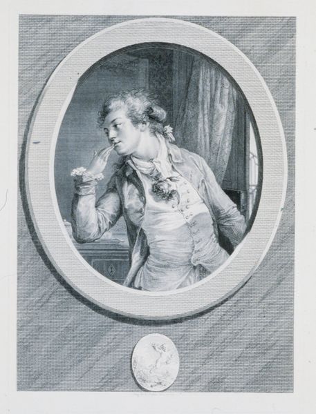 Editor: Here we have "Johannes Ewald," an engraving from 1779, created by Terkel Kleve. The subject is framed in an oval, like a cameo. It’s so precise and neat... What strikes me is the sitter's gaze – it seems to look towards a better future. How do you interpret this work? Curator: Well, this portrait gives us a glimpse into the late 18th century and its ideals. Note the neoclassical frame, referencing a revival of classical antiquity's aesthetics, which often intersected with Enlightenment values. Who was considered worthy of memorializing and how were those decisions tied to gender, class and nation building at the time? Editor: That's interesting. I see the Neoclassical influence in the frame but I hadn't thought about who got memorialized and why. Curator: Exactly! Now, consider Ewald's identity as a poet and playwright in the context of burgeoning Danish nationalism. Kleve is presenting him in a way that reinforces societal expectations of leadership and creativity, through an elite cultural lens. The image of the poet-intellectual advances the power of certain narratives while obscuring others. Who is left out of the frame? Editor: I see what you mean. The portrait promotes one idea of Danish identity tied to literature, while it normalizes the exclusion of others. It’s a very specific narrative being constructed. Curator: Precisely! By understanding this, we can start to deconstruct the power dynamics embedded within seemingly straightforward portraiture. Art becomes an entry point for understanding broader social and historical narratives. Editor: I hadn’t considered it that way before. I’m starting to understand the weight that images can carry, beyond their surface appearance.