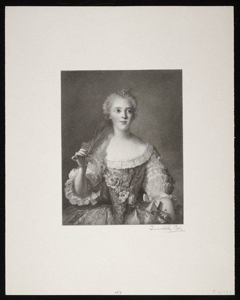 This engraving, *Mrs. Carnac*, was made by Timothy Cole, we don't know exactly when. The whole image vibrates with these tiny marks that build up to describe the texture of her dress. Look at the way Cole uses short, controlled strokes to create depth and volume, especially in the folds of Mrs. Carnac's elaborate gown. It's like he's mapping the surface with light and shadow, giving it this almost tactile quality. I'm drawn to the way he defines her face with such delicate lines, capturing this sort of serene expression. It's subtle but powerful. Thinking about his process, I think it shows how a conversation with the material can lead to a work that feels both precise and alive. It makes me think of Vija Celmins and her obsessive approach to mark making. Both are so different, but united by this attention to surface. Ultimately it's these quiet, repetitive gestures that transform a flat surface into something full of depth.