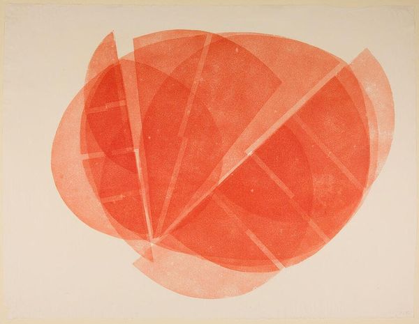Editor: Lynn Chadwick's "Moon in Alabama," done with some sort of printmaking technique, presents this geometric orb that almost looks like a futuristic satellite. I find it strangely melancholic. What do you make of it? Curator: Melancholy is a good word. The geometry offers a cold, rational structure, yet the textures inside each plane evoke a fragile, almost lunar surface. It reminds me of a fractured dream, or a memory trying to piece itself back together. Do you feel that tension too? Editor: Absolutely. There's this push-pull between the scientific and the ethereal, the planned and the accidental. Curator: Maybe that's the Alabama in it. That longing for something just out of reach. Editor: I never thought of it that way. It gives the piece a whole new dimension. Curator: Exactly! Art is like that moon, always showing a different face depending on where we stand.