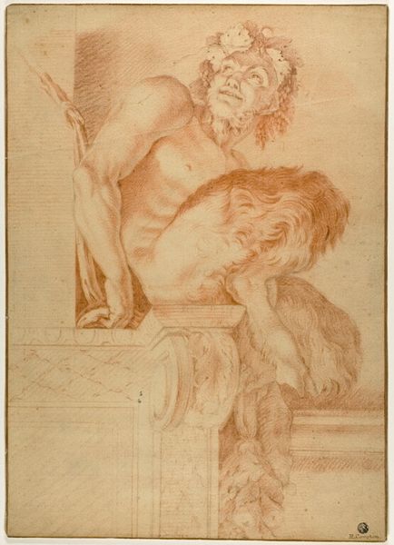 Editor: We’re looking at "St. John the Baptist seated, and a study for St. John the Baptist with two apostles" by Mattia Preti, dating from the 1660s. It’s a drawing, with both pen and charcoal work. What strikes me is its rawness, a kind of urgent energy in the lines. It's hard not to wonder at its intention. What jumps out at you? Curator: It has a feeling of peering into the artist’s mind, doesn't it? For me, beyond the sheer skill – and Preti was a master – it whispers of spiritual struggle, this wrestle with portraying a religious figure. Is he contemplative? Resolute? Uncertain, perhaps? Editor: I see that. The way St. John's eyes are cast... But how does Preti convey that feeling of searching you describe? Is it the…hatching technique? Curator: Partly the hatching, that frantic energy you picked up on – but also the variations in line weight, and, most subtly, the unfinished quality of the figures below. They become almost spectral, ghosts of ideas not fully formed, still evolving. Perhaps like St John's thoughts as he sought what? Inspiration from the divine? That empty, almost scratched background feels to be a stand-in for a spiritual search as well. You feel it, don’t you? Editor: Absolutely, and in a Baroque style? Which is so typically ornate and grandiose. This drawing is so intimate. The texture feels incredibly modern somehow. What do you make of it being both a figure study, and what appears to be a fully finished piece, right on the same paper? It’s unconventional, isn’t it? Curator: Precisely. The full figure jumps out more because of that very incomplete study down below; almost as though Preti intended to do a more realized study, but got "caught up" in the figure. Again, what can we learn from his intensity, though this quickly captured medium? Editor: That Preti captures so much…emotion in such a seemingly hurried medium and execution? It adds another layer to my appreciation. Curator: And for me, thinking about artistic process and the tension within creative and spiritual searching. Not too shabby for a quick sketch.