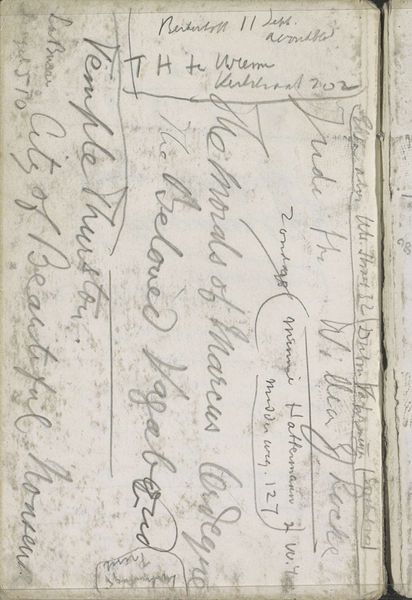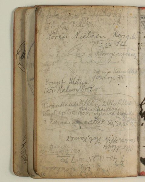 This page of sketches and text was made by Niels Larsen Stevns in the late 19th or early 20th century. The script and sketched figures of people, houses, and landscapes suggest a visual exploration of the artist's cultural and personal narrative. Observe how the forms lack precise definition, yet manage to convey an emotional presence. These human figures, drawn with just a few lines, evoke the ancient symbol of the "imago," the image of the soul. The motif appears throughout history, echoing in the funerary sculptures of antiquity and even in modern psychoanalysis as representations of the self. The act of sketching, like the creation of memory itself, assembles fragments to construct a whole. The blurred lines of the drawing might reflect the elusive nature of memory, always changing with time. Like figures in a dream, they hint at deeper psychological truths, engaging viewers on a subconscious level. The enduring echoes of the past resonate here, a powerful reminder of art's capacity to engage us on a deeply personal level.