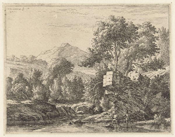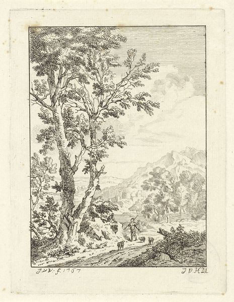 Jan Jansz. van der Vinne created this landscape with a shepherd family using etching in 1767. During this period, the Dutch Republic experienced economic decline, accompanied by social stratification. Van der Vinne, working within this context, created a scene where shepherds, traditionally romanticized as symbols of simple virtue, take center stage. However, the reality of rural life was often harsh, marked by poverty and limited opportunity. While this piece seems to uphold the traditional representation of rural life as idyllic, we can question to what extent it reflects the experiences of the working class. The careful arrangement of the composition, with the family and their flock nestled beneath the trees, creates a sense of harmony. This piece invites us to consider the complex relationship between artistic representation and lived experience, and to reflect on how notions of identity and class are constructed and negotiated within the visual sphere.