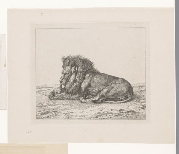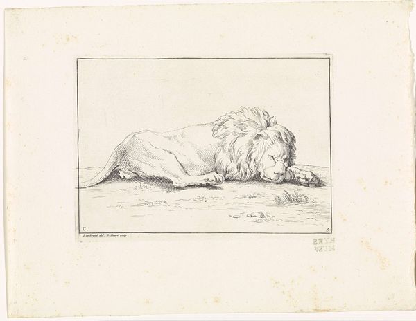 Editor: This is "Geschoren hond liggend naar rechts," or "Shaved Dog Lying to the Right," an 1803 drawing by Monogrammist JBM. It seems like a simple study of a fluffy dog in profile, rendered with very fine pencil lines. What can you tell me about this piece? Curator: What immediately strikes me is how the "shaved" nature of the dog highlights a shift in human-animal relationships. By 1803, we're moving further from working animals to companions. Do you see how the shaved areas accentuate its vulnerability? Editor: Yes, I see that. It does seem less wild and more like a pampered pet. What does the rendering style communicate? Curator: Notice the almost frantic energy in the lines used to depict the fur, yet the pose is passive. It speaks to a growing cultural anxiety, perhaps even foreshadowing industrial anxieties, about control versus freedom, nature versus artifice. The dog, once purely functional, is now shaped –literally– by human will. Does the shaved dog invite empathy or does it create distance? Editor: That’s an interesting point, it does feel like the dog has been turned into a kind of living doll or a toy. The fur almost looks like a costume that has been tailored onto the dog. Curator: Precisely! And in that shift, we glimpse anxieties about identity itself – natural versus constructed. An artist’s simple study reveals a fascinating tension. Editor: This artwork really highlights the complex relationship humans have with the natural world, a theme I hadn't initially considered when looking at this seemingly simple sketch. Thank you for showing me that.