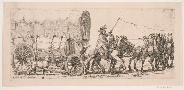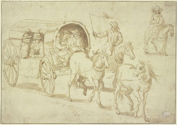 Wilhelm Marstrand made this drawing, Don Quixotes hjemfart i studekærren, using pen and brown ink on paper. The way Marstrand uses the pen creates a sense of spontaneity, almost like a quick sketch capturing a fleeting moment. The brown ink, with its varying tones, gives depth and shadow to the figures and objects, enhancing the overall sense of realism. The cross-hatching and fine lines evoke the texture of the landscape and the characters’ clothing. Marstrand's choice of materials is also interesting when we consider the story of Don Quixote. It reflects the intersection of high and low culture, a central theme in Cervantes' novel. The traditional, almost humble, quality of pen and ink contrasts with the grand adventures of the knight, echoing the novel's blend of satire and romanticism. This drawing, with its humble materials, manages to capture both the humor and the humanity of Don Quixote's world.