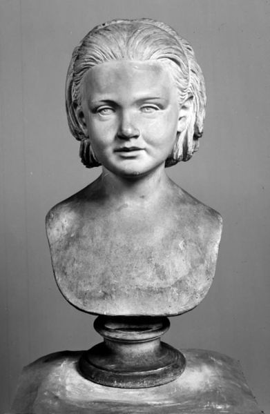 Curator: Ludvig Brandstrup crafted this marble bust, entitled “Portrait Bust of a Boy,” between 1886 and 1891. The piece resides here at the SMK, Statens Museum for Kunst. Editor: Striking. Even in black and white, you can see how he has meticulously captured the smooth, almost luminous texture of skin against the cool solidity of the marble. The formal contrast is powerful. Curator: The interplay of light on the surface is certainly intentional. Brandstrup’s decision to render this subject, most likely a young boy of some privilege, in marble nods to classical traditions of portraiture. Marble, with its connotations of permanence and purity, elevates the sitter. We also need to note, this particular choice was aligned with the prevalent academic Realism of the late 19th century, a cultural embrace of both historical and modern. Editor: I can see the historical nod, definitely. But, moving past the surface polish, what about the composition? The rigid pose, the upward gaze...it projects a sense of poised innocence. The smoothness of the surface creates an interesting interplay with the details like the intricate layering of the boy’s hair, which provides visual complexity that disrupts an otherwise simple form. It begs the question, are we supposed to be capturing realism or idealism here? Curator: The artist most likely aimed to idealize the sitter through realistically portraying him, an emerging concept at this point in history. The piece exists as a representation of not only the individual boy, but also of a greater idealized segment of Danish society that was slowly forming with new and modern industries rising at the time. The choice of marble and the skill in execution represent economic investment of a high end society at the time. The bust then, is evidence of access and opportunity during Brandstrup's own time period, that this individual held significant prestige within their world, the society that ultimately produced them. Editor: So the artistic craftsmanship here is representative of this boy's cultural identity? I hadn't thought about the marble choice within that framework. Curator: Exactly. The value we assign is a marker, not of objective worth, but of situated desire. We are no different today, buying and selling artworks to signal taste and prestige, and more subtly to claim entry or higher status within society. Editor: That offers an entirely new angle into viewing classical works; one that brings me outside and more broadly beyond, the canon's emphasis. Thank you. Curator: Anytime. I appreciate the attention you've brought to the purely aesthetic.