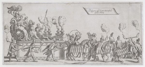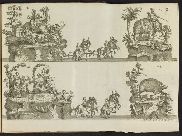 Pieter Wauters created this print in 1767, depicting several elaborate parade floats. Dominating these scenes are recurrent motifs of abundance and triumph. We see figures adorned with laurel wreaths—symbols of victory dating back to ancient Greece—and lush vegetation, alluding to prosperity and fertility. Consider the recurring palm tree. In antiquity, it represented triumph and eternal life, often depicted in Roman art to celebrate military victories. Yet, observe how its meaning evolves; in later Christian iconography, the palm becomes associated with martyrdom and spiritual victory. Its presence here in 18th-century parade floats suggests yet another layer of meaning, perhaps alluding to colonial aspirations, connecting back to ancient desires of power and conquest. The floats evoke a deep-seated human desire for spectacle. This work is an expression of collective memory, subconscious desires, and aspirations, engaging viewers on a primal level.