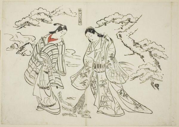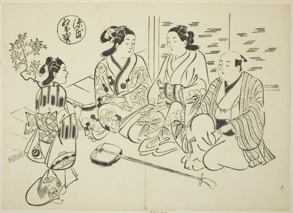 Okumura Masanobu created “Heating Sake with Maple Leaves” sometime in the mid-1700s as a woodblock print, part of a 12-part series parodying theatrical plays. During the Edo period, depicted here, Japan experienced economic growth and relative peace, which led to the development of a vibrant urban culture. This print reflects such cultural blossoming, with its playful take on traditional narratives and its depiction of leisure. We see a group of women enjoying a picnic. One plays a shamisen, while others attend to heating sake. A male figure approaches them. The print’s style, known as ukiyo-e, often focused on the transient pleasures of life, particularly those associated with the floating world of entertainment districts. Yet, notice that despite the seeming lightheartedness, this representation of women is carefully constructed, reflecting the complex social dynamics of gender, class, and leisure in Edo society. Masanobu captures the cultural nuances of his time, presenting a snapshot of a world in flux, where tradition and modernity intertwine.