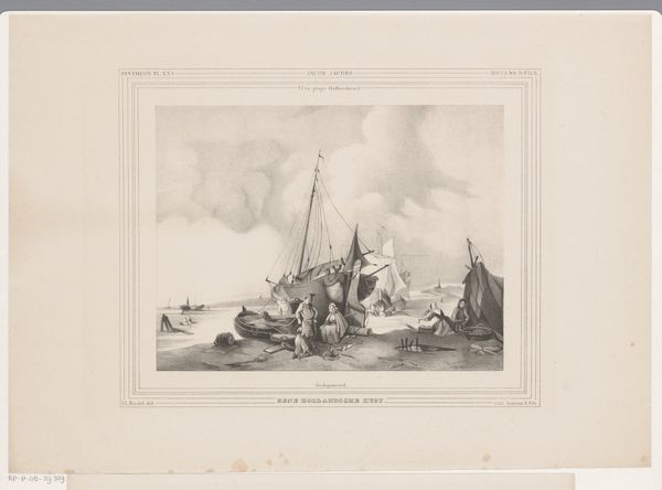 Editor: Here we have Piet Verhaert’s "Schepen liggen voor anker bij een rede," or "Ships Anchored in a Roadstead," an etching from 1887. The whole scene feels very quiet and still, even though it's a seascape with boats and quite a bit of activity hinted at in the distance. It feels very dreamlike, but also kind of… ominous? What do you see in this piece? Curator: Ominous, yes! It strikes me as having that perfect blend of serenity and implied drama, like a breath held before a storm. Look how Verhaert uses incredibly fine lines to build up those heavy, brooding clouds. You can almost feel the dampness in the air, can't you? And the way the ships sit low in the water; they’re not dominating the scene, but somehow, they're very present. Do you notice how much detail is on the large ship to the right, contrasted with the rest of the work? Editor: Yeah, the details really pop out on that one! It makes the rest of the scene almost fade back, while still adding context. How much do you think the romanticism movement played a role in this work? Curator: Massively! Romanticism loved the sublime, that sense of awe mixed with fear. Think of Turner’s seascapes, the sheer power of nature dwarfing human endeavor. Verhaert's etching is on a much smaller scale, more intimate. It makes me think of being alone, on a still beach, looking out at this very old industry fading into time. You think about journeys and the distance these ships had to sail... It’s like history whispering on the breeze. Don’t you think? Editor: Definitely. It is far more than what first meets the eye! I suppose I can start to feel some of those whispers myself. This was an illuminating piece to look closer at, thank you. Curator: My pleasure. It’s wonderful how a simple etching can be a portal to so many emotions and untold stories, right?