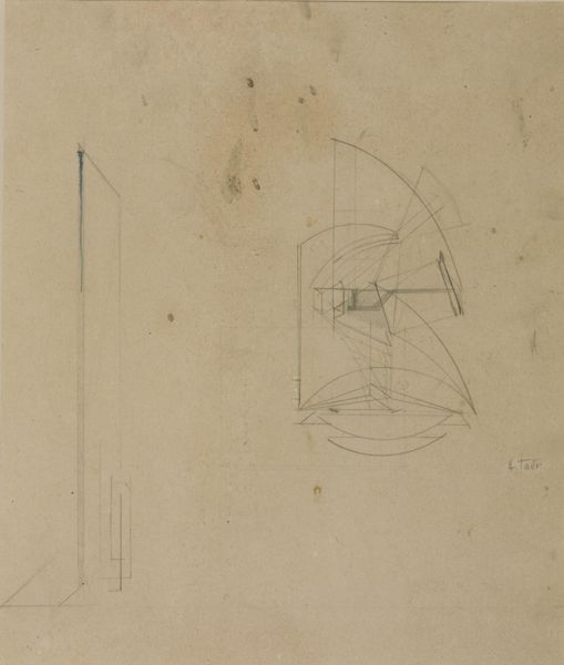 Editor: So, here we have Naum Gabo's "Sketch," a work from around the late 1910s, held at the Tate. It is a pencil drawing that feels very architectural. How do you interpret this work, what does it communicate? Curator: To me, it whispers of utopian aspirations, a sort of weightless geometry floating just above the earth. Imagine the sharp lines as pathways, not constraints. I wonder, what if our world felt as open and boundless as Gabo envisioned? Editor: That's beautiful! It didn't occur to me to think of it as a boundless space, but more as a structured, contained place. Thank you for your perspective. Curator: And thank you! It’s a lovely reminder of how art can shift and surprise, always offering new vistas.