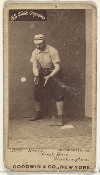 This is a photograph of William Frederick "Bill" Krieg, a 1st Baseman for the St. Joseph Clay Eaters. It was produced as a promotional card for Old Judge Cigarettes by Goodwin & Company in 1889. The image shows Krieg in action, poised to catch a ball, which reflects baseball's growing popularity in the late 19th century United States. But this isn't just about sport. The commercial context of this card speaks volumes. Cigarette companies like Goodwin & Company recognized the marketing potential of baseball, using players' images to promote their products. This highlights the intersection of commerce, leisure, and celebrity culture, revealing how institutions shape our perceptions and values. It’s worth asking, what does it mean to turn athletes into commodities? To understand the image better, we can delve into the archives of advertising history and trace the evolution of celebrity endorsements. Looking at the legal history of the tobacco industry might also reveal the forces at play in the promotion of baseball through commercial products.