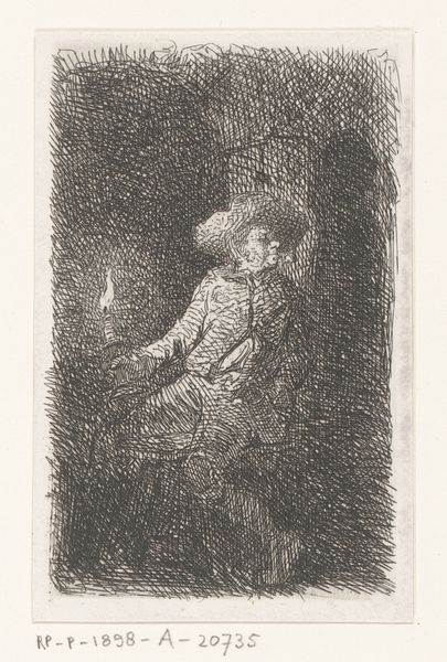 Jan Lievens rendered this etching with a standing woman and sitting man with precise strokes. The woman's draped figure evokes a sense of timelessness, reminiscent of classical depictions of mourning or supplication. Consider the motif of draped figures across art history. From ancient Roman sculptures to Renaissance paintings, the veil symbolizes both grief and reverence. The pose, with the hands clasped at her chest, is a gesture found in countless religious and secular works, signifying piety and introspection. This composition’s somber quality triggers a deep emotional response, rooted in our collective memory of loss and sorrow. It is an evocation of the human condition. These gestures, etched into our cultural consciousness, re-emerge to shape our perception of such artworks, transcending epochs. The image becomes a vessel, carrying the echoes of past emotions into our present, a testament to the enduring power of symbols and iconography.